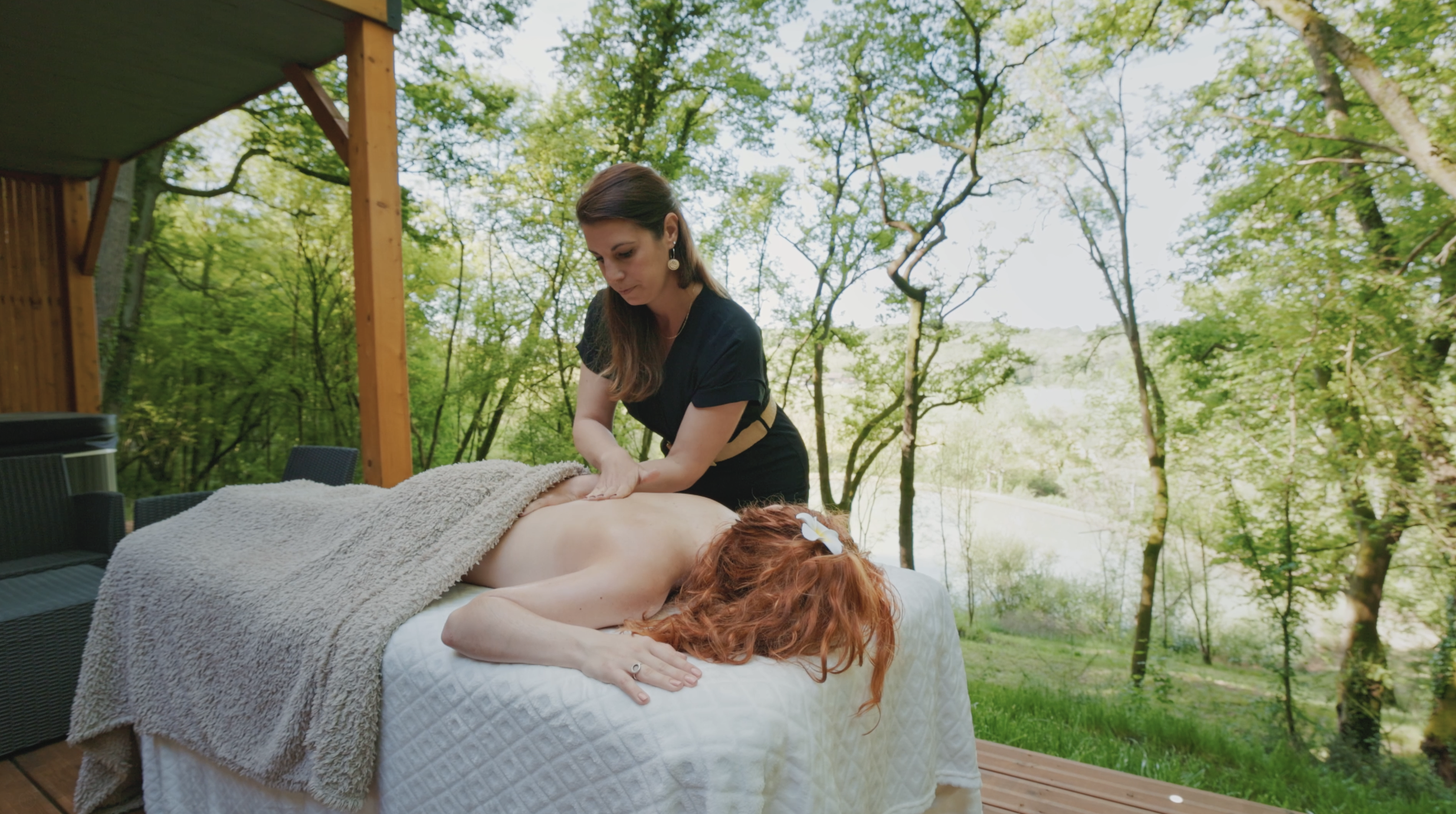 Profitez d’un massage bien-être directement dans votre cabane, réalisé par notre praticienne partenaire.